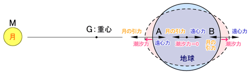 この過不足が潮汐を起こす潮汐力である。(図3)