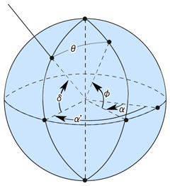 (5)水平成分:fTh=frh-fdh=G・M(sinθ'/r2-sinθ/d2)